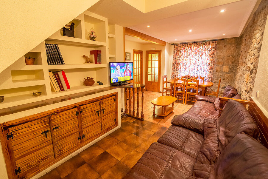 La casa rural Cañón de Río Lobos II de alquiler completo es una casa rústica con abundante piedra y madera que la otorga un ambiente cálido y acogedor. La capacidad de 1 a 7 personas, la casa es de 3 habitaciones, con dos baños: uno con ducha y otro con bañera, ambos con toallas y secador de pelo. Se admiten mascotas. Chimenea, calefacción.