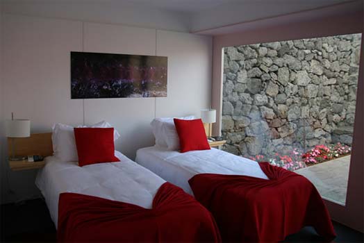 La Casa da Terra posee una habitación con cama matrimonial de 1,60 X 2,0 m, televisión LCD y otra habitación con dos camas individuales de 1,0 X 2,0 m. Todas las habitaciones tienen aire acondicionado, cuarto del baño privado y televisión tipo LCD. En la planta baja está el salón con chimenea, comedor, cocina, cuarto de baño y un patio interior.