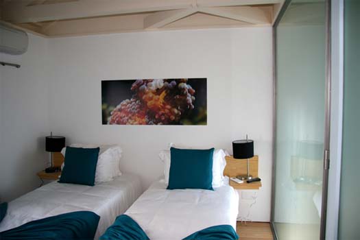 La Casa do Mar posee una habitación con cama matrimonial de 1,60 X 2,0 m y otra habitación con dos camas individuales de 1,0 X 2,0 m. Todas las habitaciones tienen aire acondicionado, cuarto del baño privado y televisión tipo LCD. En la planta baja tiene un salón con chimenea, comedor, cocina, cuarto de baño y un patio interior.