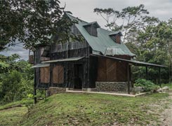 La Casa Ecológica está completamente equipada con utensilios de cocina, agua caliente, hamacas, ropa de cama, piso de madera etc. La mayoría de los muebles fueron construidos con madera y materiales reciclados; las ventanas han sido diseñadas para dejar circular el aire a través de la casa; la falta de cortinas permite experimentar el manto de estrellas, despertar con los rayos de sol o la relajada música del bosque lluvioso. Como parte de las prácticas sostenible, ambas aguas negras y grises son tratadas de forma separada, reciclaje, así como ahorro de agua y energía has sido incorporadas en la operación de la casa; los vegetales usados para cocinar son producidos de forma orgánica en el sitio. Proyectos futuros incluyen, la colocación de paneles, un bio-digestor para gas, entre otros.