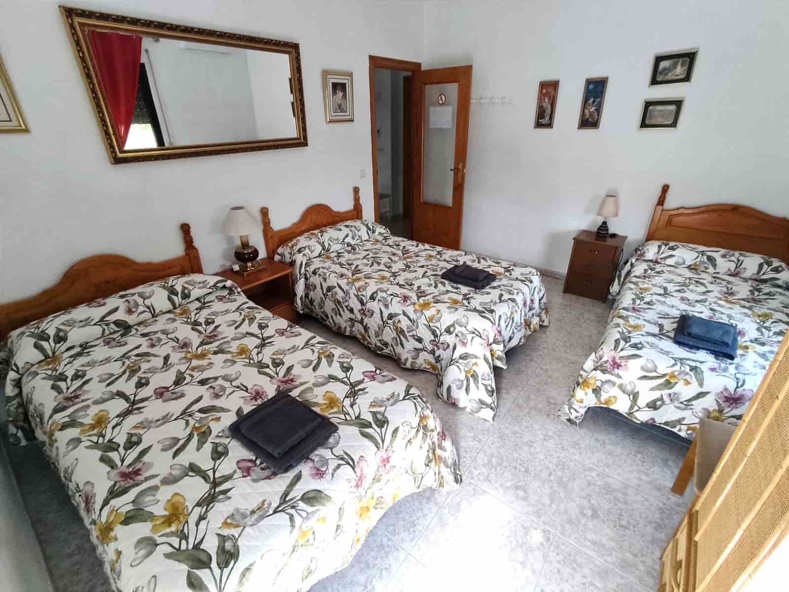 · Planta baja, salón con sofá cama, baño completo, habitación doble. · Primera planta, 3 habitaciones (una doble,una triple y una de matrimonio), baño completo, cocina.