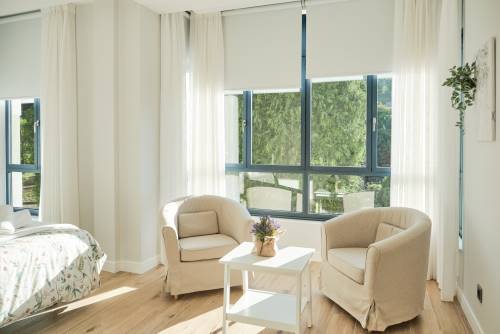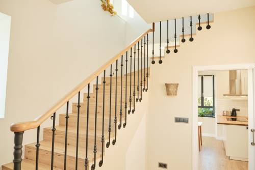 Dispone de 5 habitaciones, cada una con su baño en suite. En la planta de arriba hay 4 habitaciones, dos con camas dobles, y dos con 2 camas individuales cada una. En la planta de abajo hay una habitación doble también con su baño en suite, y además otro baño de cortesía.
