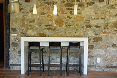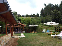 Un porche de 90 m cuadrados de lado a lado del caserío ofrece amplio y acogedor espacio. Todo él es de piedra y madera en el que se dan distintos ambientes y que ofrece la posibilidad de realizar reuniones para grupos amplios. Está acristalado con grandes ventanales que permiten seguir en contacto con la naturaleza. Toda la zona de interior, casa y porche, es de no fumadores para los que se ha dispuesto una salita en la zona exterior del porche. Sus dos barbacoas y su mirador hacia el mar hacen de este jardín un lugar idílico para el viajero.