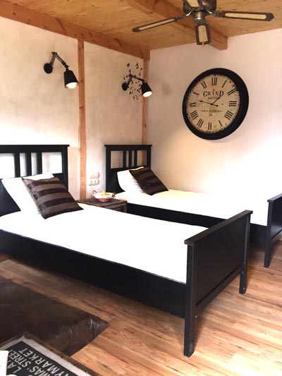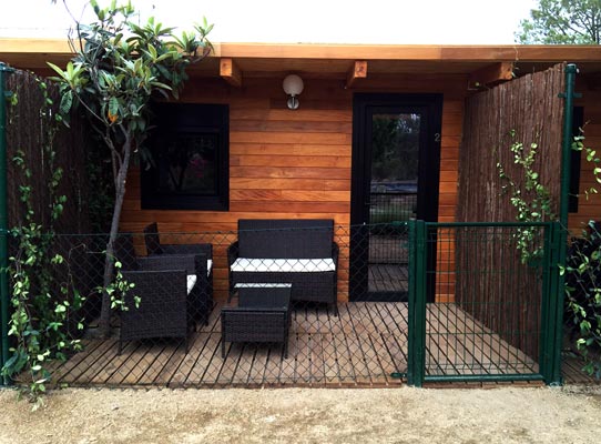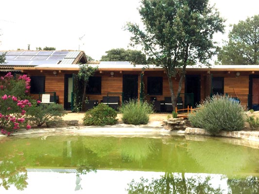Las instalaciones disponen de una gran casa de madera con estancia multiuso de 30 metros, siete habitaciones adyacentes con baño y con capacidad para 26-30 personas, miles de metros de jardines propios, pérgolas y carpas para reuniones y talleres.