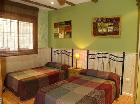 La Casa Rural es totalmente independiente y está compuesta por 2 dormitorios, uno de elllos con cama de matrimonio y el otro con 2 camas independientes, gran salón-comedor con chimenea, cocina americana totalmente equipada y servicio completo.