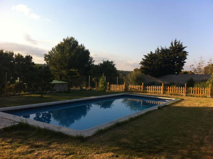 En el recinto el cliente encuentra la casa que dispone de 2 baños, 1 cocina, 1 sala comedor, 1 bodega, 1 porche exterior y 5 habitaciones (3 con cama de matrimonio y 2 con dos camas, una de ellas con litera). En el exterior encontramos zona ajardinada, barbacoa y piscina.