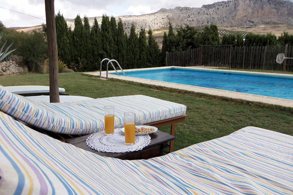 Esta rodeada de un precioso jardín totalmente vallado con un mobiliario muy cómodo y desde el que se tienen vistas maravillosas de El Torcal, y todo el entorno.