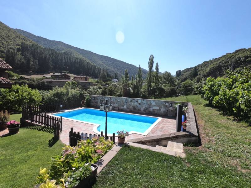 Las instalaciones cuentan con varios jardínes con mesas, sillas y hamacas, piscina (abierta de junio a octubre), amplio aparcamiento y 2 barbacoas cubiertas donde se pueden celebrar reuniones al calor del fuego.