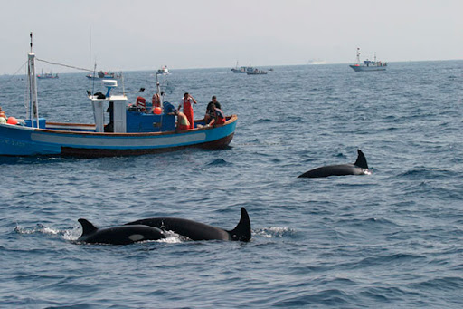 El cetáceo más temido de todos, la orca, también transita por el Estrecho de Gibraltar. Son piscívoras y se alimentan principalmente de atunes rojos, por lo que los estudiosos y conservacionistas insisten en que los incidentes que ha podido haber no son ataques sino interacciones producto del juego y la curiosidad. No tienen ningún interés en los tripulantes. Al igual que otros cetáceos, son animales muy curiosos y buscan estímulos en su entorno constantemente. Suelen ser avistadas en verano, cuando cruzan el Estrecho en dirección al Atlántico.