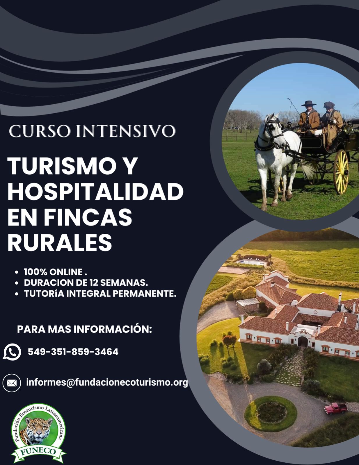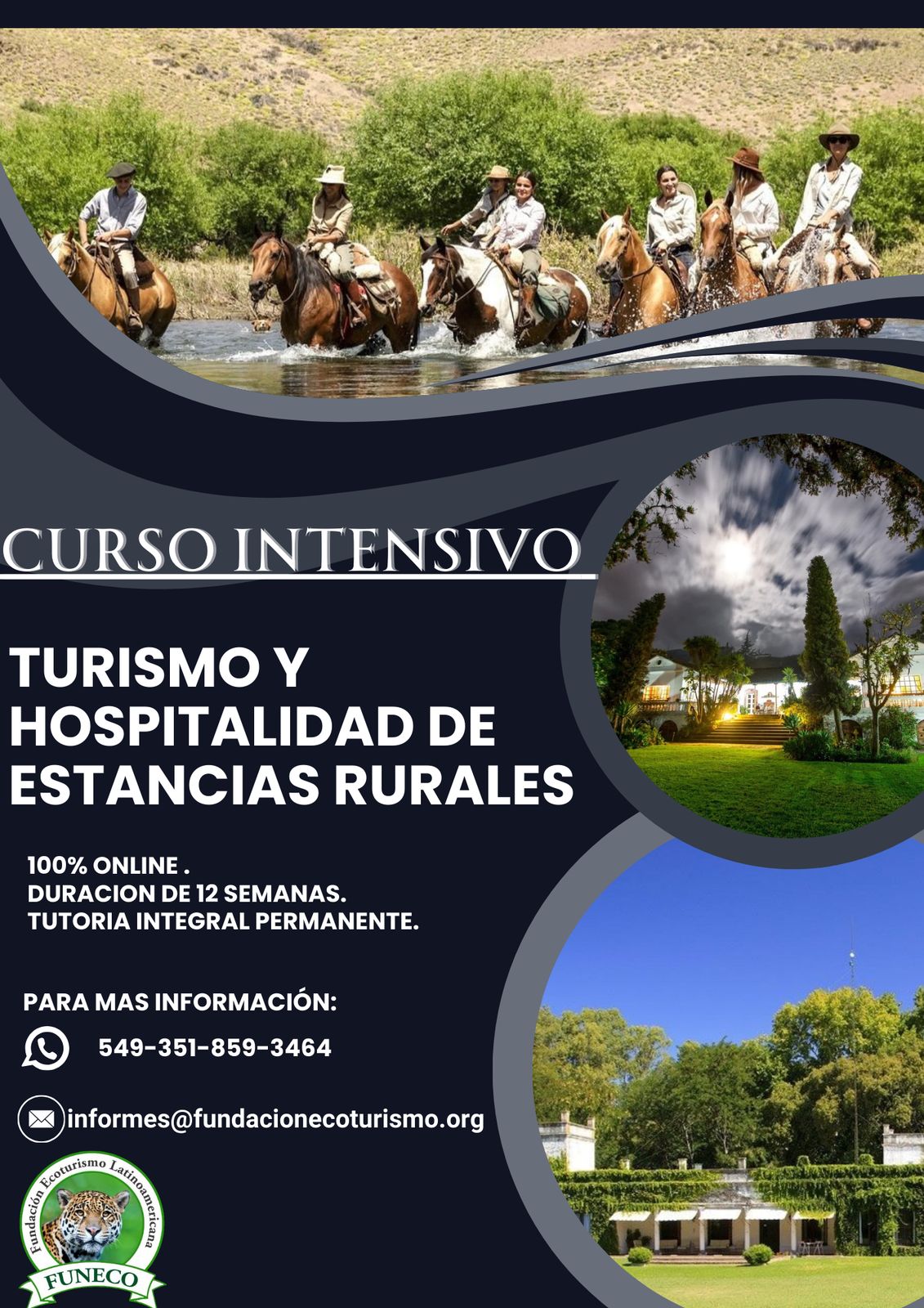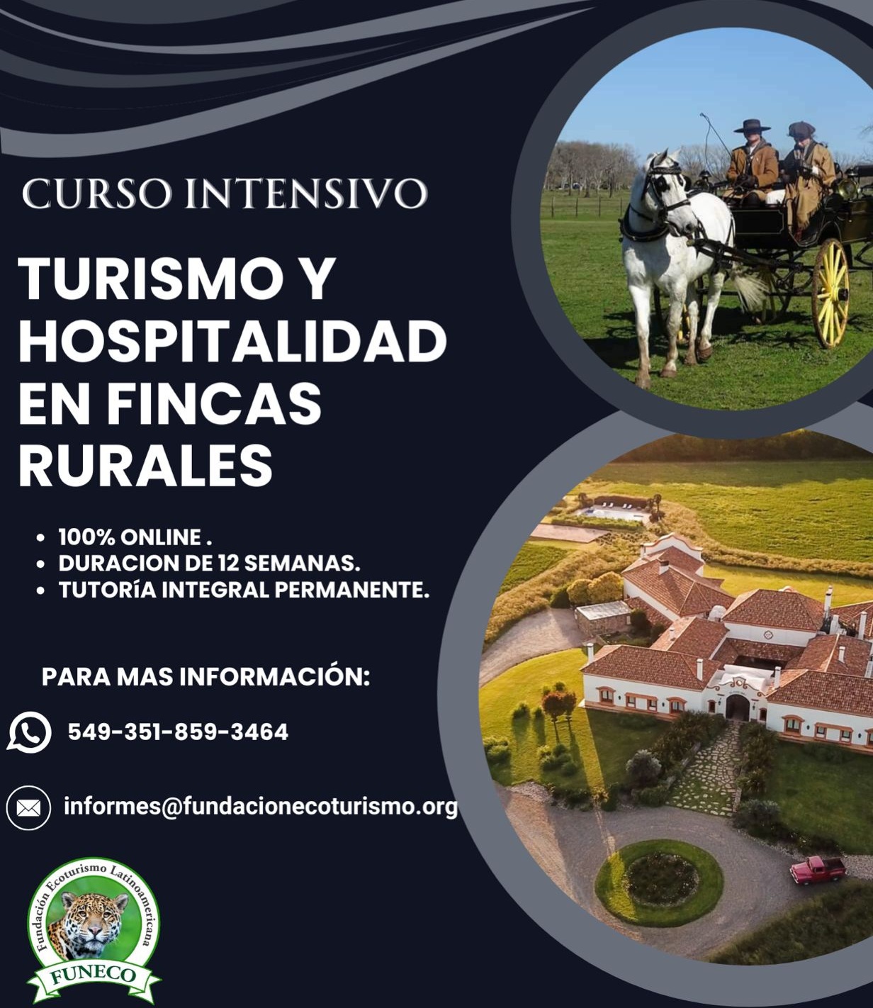 La FUNDACIÓN ECOTURISMO dará inicio el próximo miércoles 23 de abril al 23º curso intensivo sobre turismo y hospitalidad en fincas y estancias de zonas rurales. Este curso incluye el turismo rural comunitario o vivencial en las comunidades originarias.