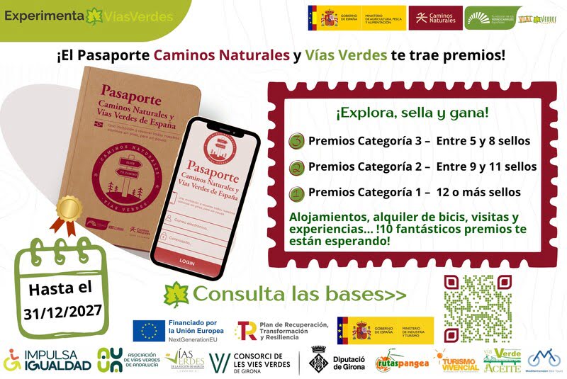 La Fundación de los Ferrocarriles Españoles (FFE), en colaboración con el Programa de Caminos Naturales del Ministerio de Agricultura, Pesca y Alimentación y los socios del proyecto Experimenta Vías Verdes, ha puesto en marcha un nuevo programa de premios dirigido a todas las personas que recorran Caminos Naturales y Vías Verdes de España y sellen su pasaporte oficial.