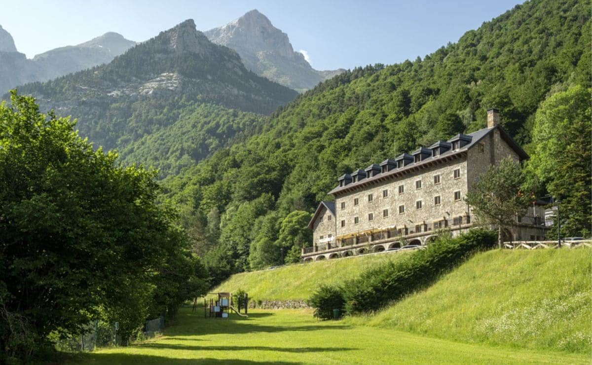 También aparece en este listado el Parador de Bielsa, que se sitúa al pie del Monte Perdido, en medio de un espectacular paisaje del Pirineo oscense. Este alojamiento está rodeado de prados, arboledas y lagos de montaña con aguas cristalinas. Es una acogedora cabaña de montaña con base de piedra y madera que ofrece hermosas vistas a las montañas y al río. Es un lugar idílico donde poder disfrutar de una amplia oferta deportiva, escapadas románticas a la montaña o excursiones para todos los gustos.