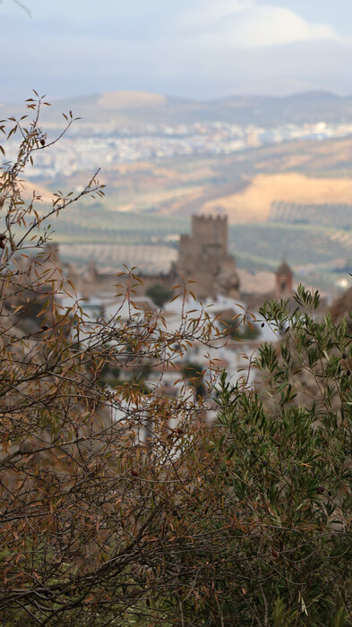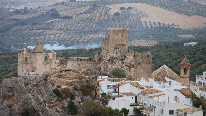 Se termina este sendero por la Vereda del Agua atravesando todo el pueblo de Zuheros, un Pueblo Bonito de España, por sus calles, hasta llegar a su castillo, desde el cual se tienen unas vistas del los campos de olivares cordobeses.