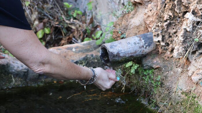 En un punto se llega a una bifurcación del sendero, que si se sigue por la derecha 100 metros mas adelante, se llega a la Fuente de la Mora, hecha con losas de piedra caliza tallada.